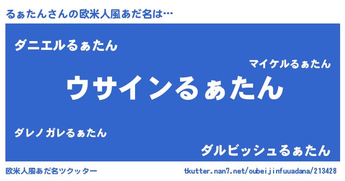 | 女子向けラノベタイトル風あだ名 | 『るぁたんは平凡を望む』 |