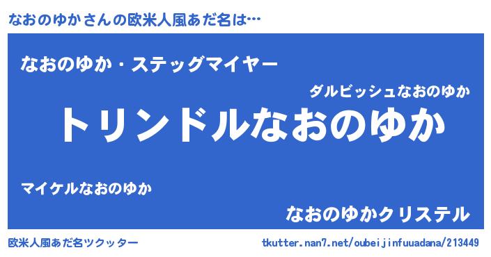 | 男性向けラノベタイトル風あだ名 | 『なおのゆか~年齢イコール彼女いない歴の魔法使い~』 |