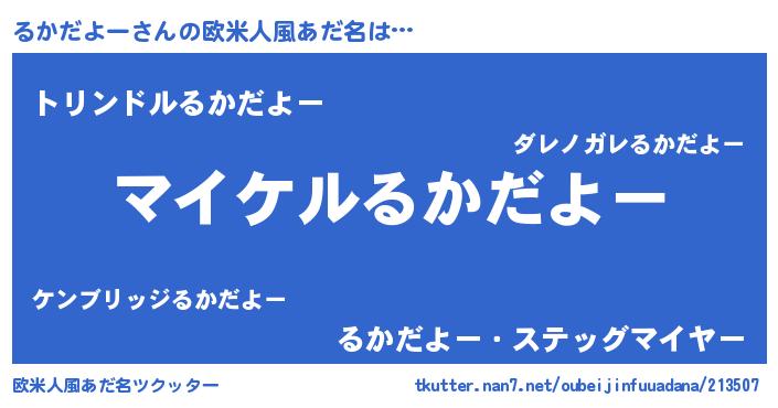 | 男性向けラノベタイトル風あだ名 | 『るかだよーの憂鬱』 |