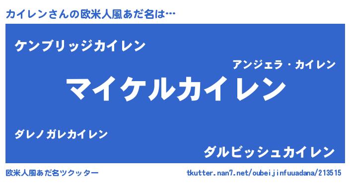 | 男性向けラノベタイトル風あだ名 | 『カイレンの憂鬱』『魔弾の王とカイレン』 |