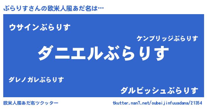 | 男性向けラノベタイトル風あだ名 | 『おまえをオタクにしてやるから、俺をぶらりすにしてくれ! 』 |