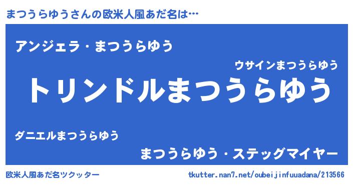 | 肩書あだ名 | 『まつうらゆう上級大将』 |