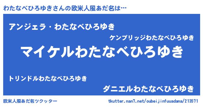 | 男性向けラノベタイトル風あだ名 | 『わたなべひろゆきの憂鬱』 |