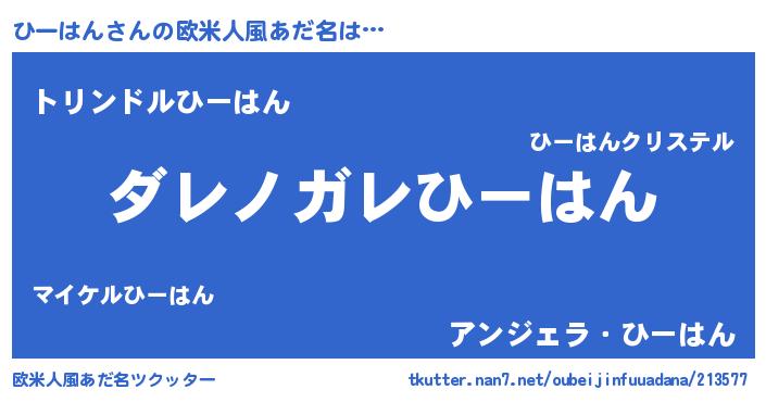 | 意味不明あだ名 | 『住所不定無職ひーはん(43歳)』 |