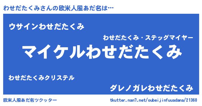 | ポケモン風あだ名 | 『ワセチュウ』『ヒワセダタクミ』 |