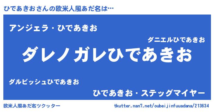 | 男性向けラノベタイトル風あだ名 | 『この素晴らしい世界にひであきおを!』 |