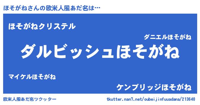 | 意味不明あだ名 | 『永久保存ほそがね』『自称ほそがね』 |