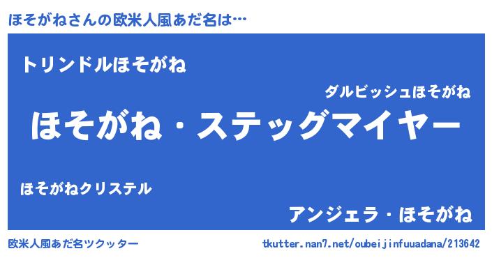 | 意味不明あだ名 | 『ヨモギ科ほそがね属』『自称ほそがね』 |