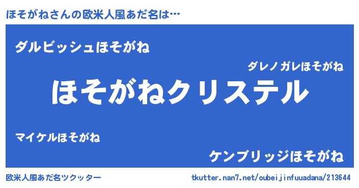 | ファンタジー風あだ名 | 『エターナルホソガネー』『ゼホソトゥ』 |