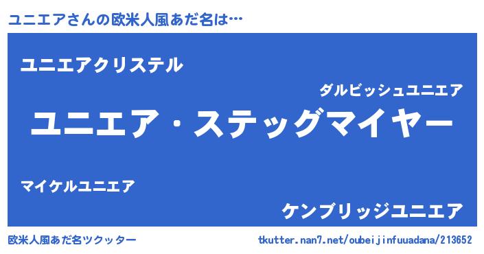 | 男性向けラノベタイトル風あだ名 | 『緋弾のユニエア』『ユニエアの憂鬱』 |