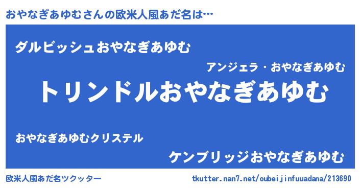 | 男性向けラノベタイトル風あだ名 | 『転生したらおやなぎあゆむだった件』 |