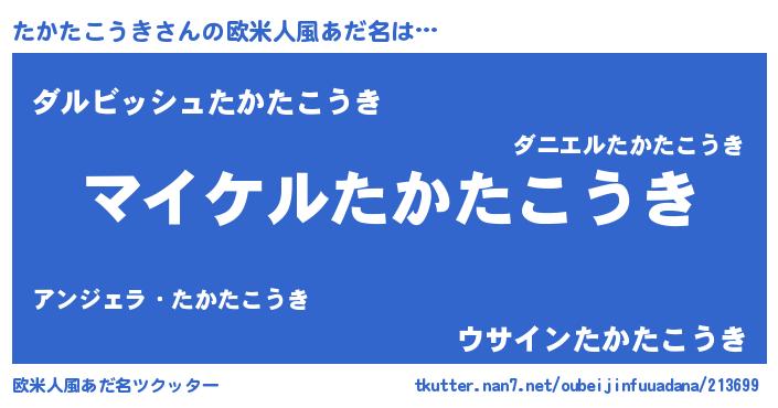 | 男性向けラノベタイトル風あだ名 | 『タカタコウキアートオンライン』 |