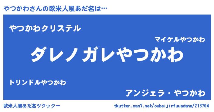 | 男性向けラノベタイトル風あだ名 | 『この素晴らしい世界にやつかわを!』 |