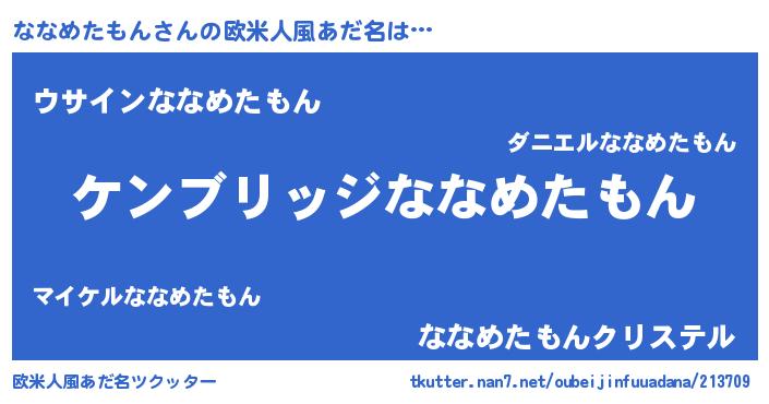 | 男性向けラノベタイトル風あだ名 | 『Re:ななめたもんから始める異世界生活』 |