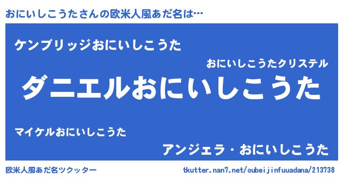| 女子向けラノベタイトル風あだ名 | 『死神おにいしこうたの再婚』 |
