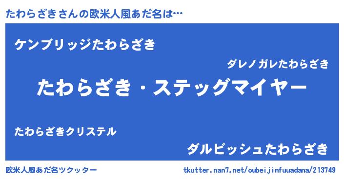 | 意味不明あだ名 | 『自称たわらざき』『永久保存たわらざき』 |