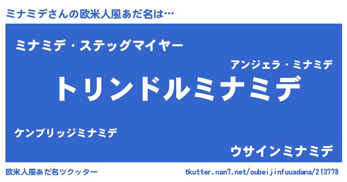 | 男性向けラノベタイトル風あだ名 | 『ミナミデ~年齢イコール彼女いない歴の魔法使い~』 |