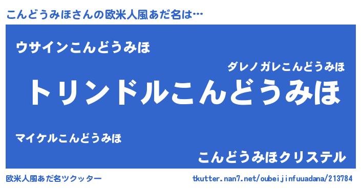 | 男性向けラノベタイトル風あだ名 | 『こんどうみほ~年齢イコール彼女いない歴の魔法使い~』 |