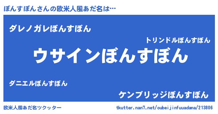 | 胡散臭い通販商品みたいなあだ名 | 『信頼と実績のサプリメント…その名も「ぼんすぼん」』 |