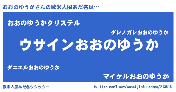 | 男性向けラノベタイトル風あだ名 | 『おおのゆうかの嫁は女の子じゃないと思った?』 |