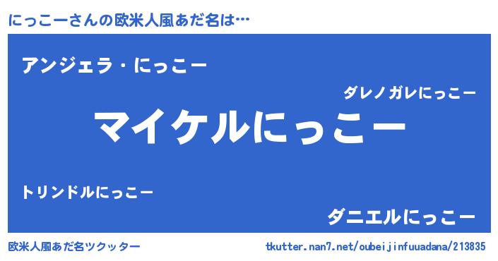 | ピコ太郎風あだ名 | 『ニコ史郎』『ニニ太郎』『ニッ次郎』 |