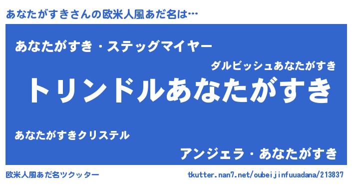| 男性向けラノベタイトル風あだ名 | 『アナタガスキスレイヤー』 |