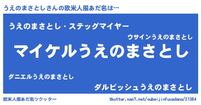 | 男性向けラノベタイトル風あだ名 | 『うえのまさとしの憂鬱』 |