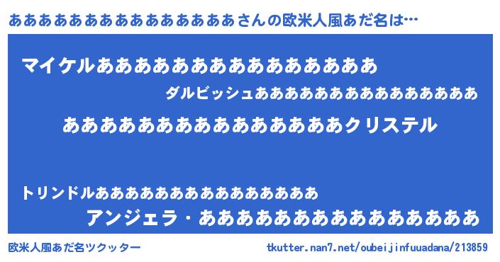 | 女子向けラノベタイトル風あだ名 | 『あああああああああああああああの雑貨屋さん』 |