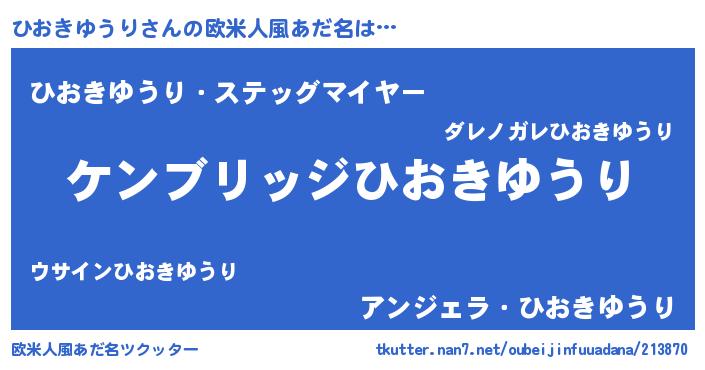 | 男性向けラノベタイトル風あだ名 | 『Re:ひおきゆうりから始める異世界生活』 |