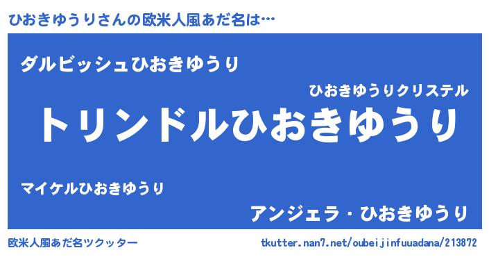 | 女子向けラノベタイトル風あだ名 | 『ひおきゆうりの玉の輿計画!』 |
