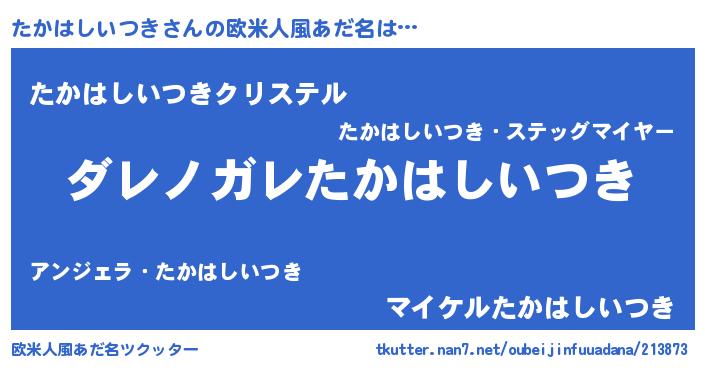 | 男性向けラノベタイトル風あだ名 | 『この素晴らしい世界にたかはしいつきを!』 |