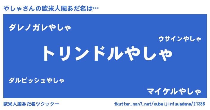 | 男性向けラノベタイトル風あだ名 | 『ヤシャスレイヤー』『やしゃの憂鬱』 |