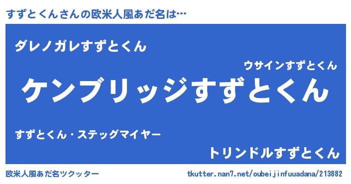 | 男性向けラノベタイトル風あだ名 | 『Re:すずとくんから始める異世界生活』 |