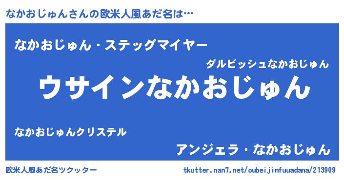 | 男性向けラノベタイトル風あだ名 | 『ダンジョンになかおじゅんを求めるのは間違っているだろうか』 |