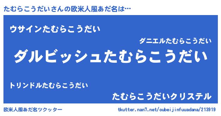 | ヘコむあだ名 | 『たむらこうだい(苦笑)』『たむっ子』 |