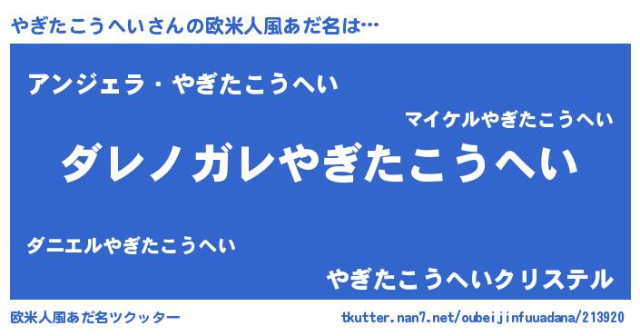 | 意味不明あだ名 | 『住所不定無職やぎたこうへい(6歳)』 |