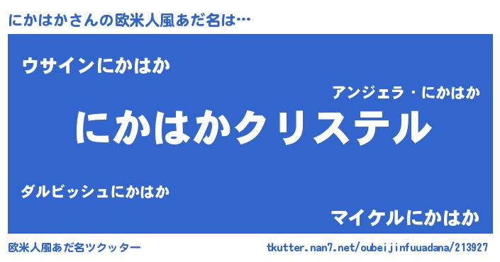 | ポケモン風あだ名 | 『ニカハダネ』『ヒニカハカ』 |
