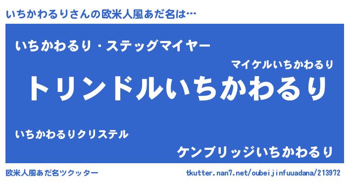 | 男性向けラノベタイトル風あだ名 | 『いちかわるり~年齢イコール彼女いない歴の魔法使い~』 |