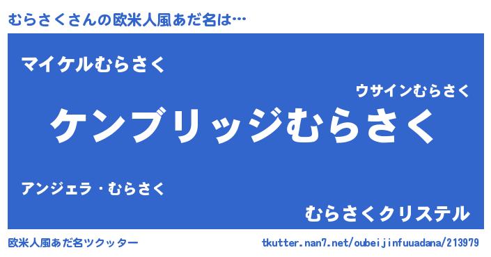 | 男性向けラノベタイトル風あだ名 | 『Re:むらさくから始める異世界生活』 |