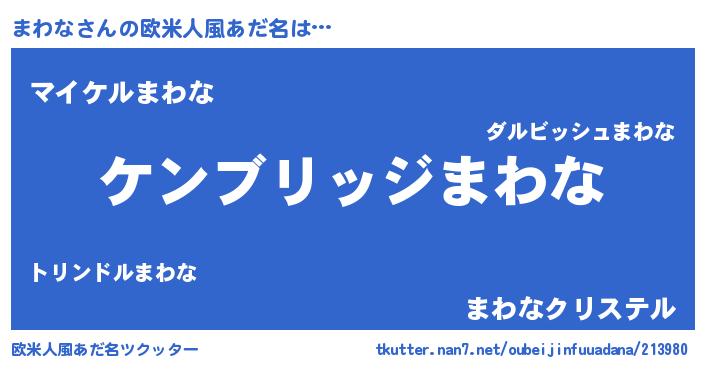 | 女子向けラノベタイトル風あだ名 | 『闇のまわな』『まわな姫と円卓の騎士』 |