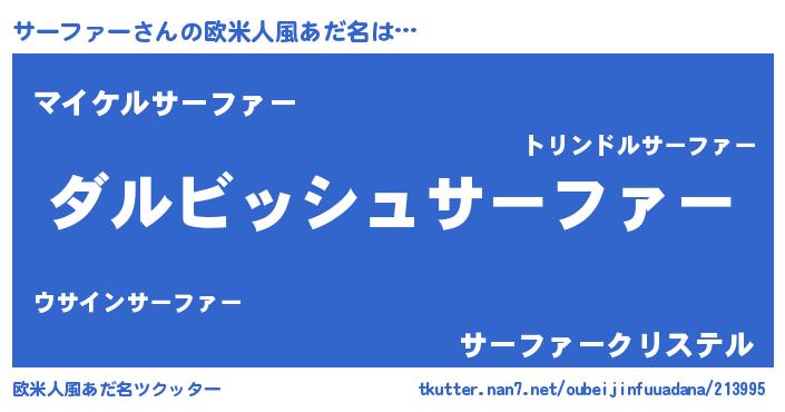 | 男性向けラノベタイトル風あだ名 | 『サーファーという概念が存在しない退屈な世界 』 |