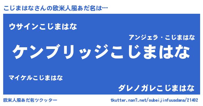 | 女子向けラノベタイトル風あだ名 | 『こじまはななんてお断りですっ。』 |
