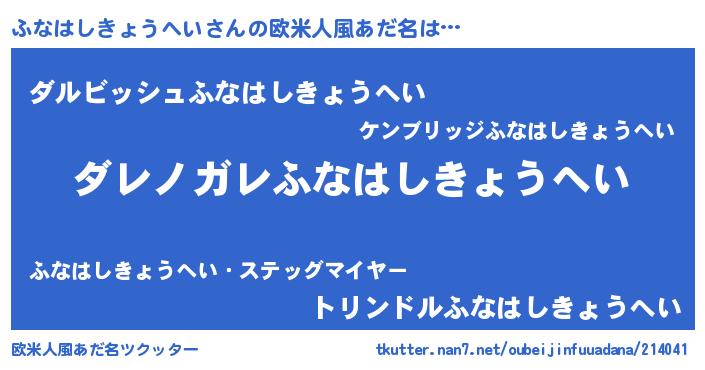 | 男性向けラノベタイトル風あだ名 | 『この素晴らしい世界にふなはしきょうへいを!』 |