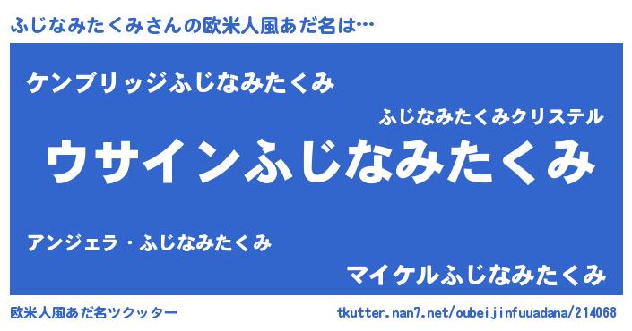 | ポケモン風あだ名 | 『ヒフジナミタクミ』『フジセウス』 |