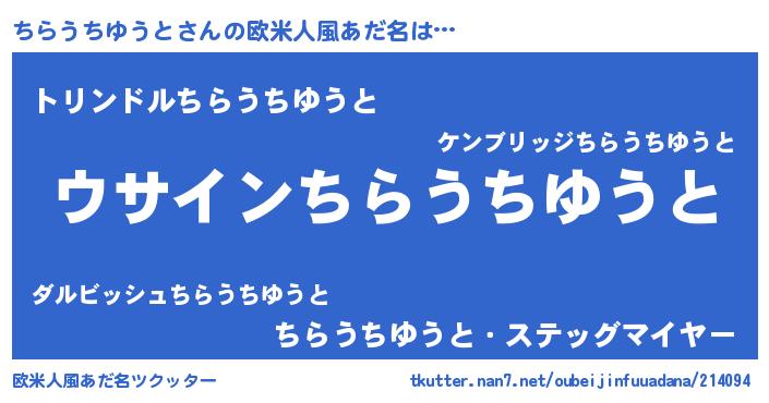 | 男性向けラノベタイトル風あだ名 | 『ちらうちゆうとの嫁は女の子じゃないと思った?』 |