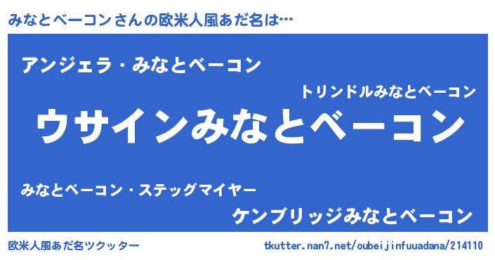 | 男性向けラノベタイトル風あだ名 | 『ダンジョンにみなとベーコンを求めるのは間違っているだろうか』 |