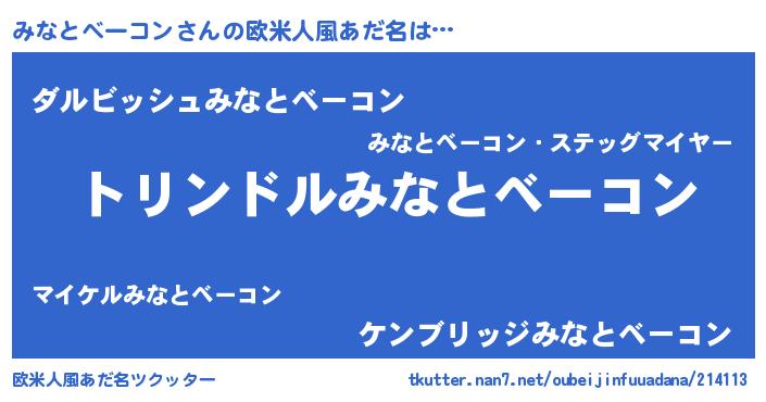 | 男性向けラノベタイトル風あだ名 | 『ミナトベーコンスレイヤー』 |
