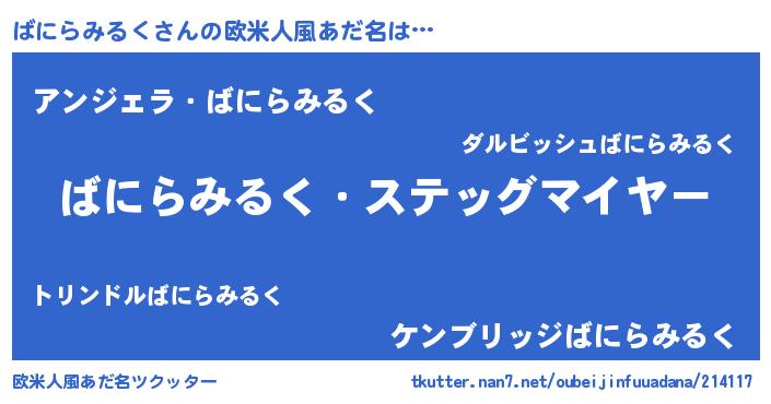 | ヘコむあだ名 | 『ばにらみるく(小並感)』『ばにっふぃ~』 |