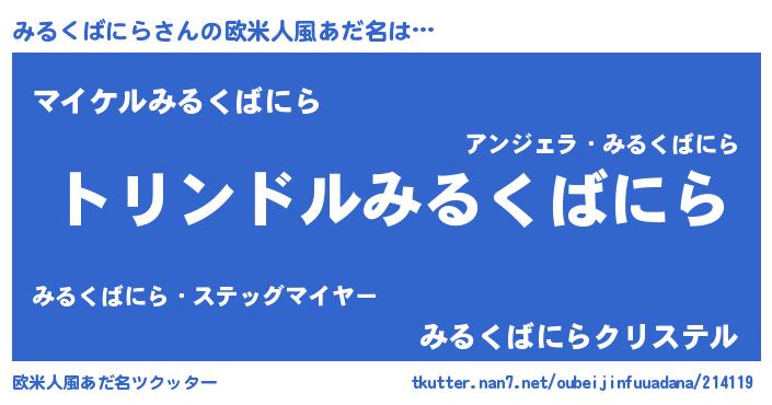 | 男性向けラノベタイトル風あだ名 | 『転生したらみるくばにらだった件』 |