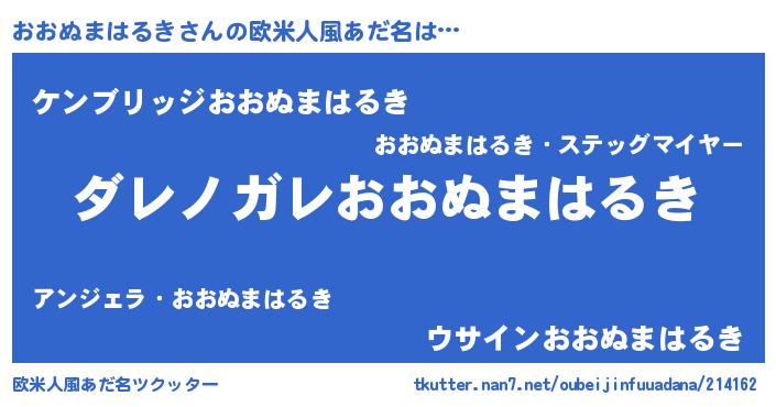 | 男性向けラノベタイトル風あだ名 | 『この素晴らしい世界におおぬまはるきを!』 |
